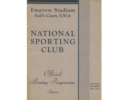Other Sports » Boxing » Boxing Programmes » Pre-War » NATIONAL SPORTING CLUB 1936 BOXING PROGRAMME (EMPRESS STADIUM, EARL'S COURT) - INCLUDING WALSH V CAPLAN
