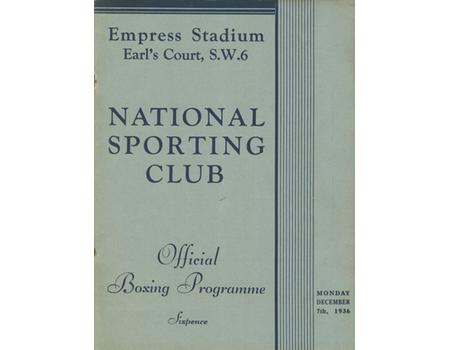 Other Sports » Boxing » Boxing Programmes » Pre-War » NATIONAL SPORTING CLUB 1936 BOXING PROGRAMME (EMPRESS STADIUM, EARL'S COURT) - INCLUDING WALSH V DALY
