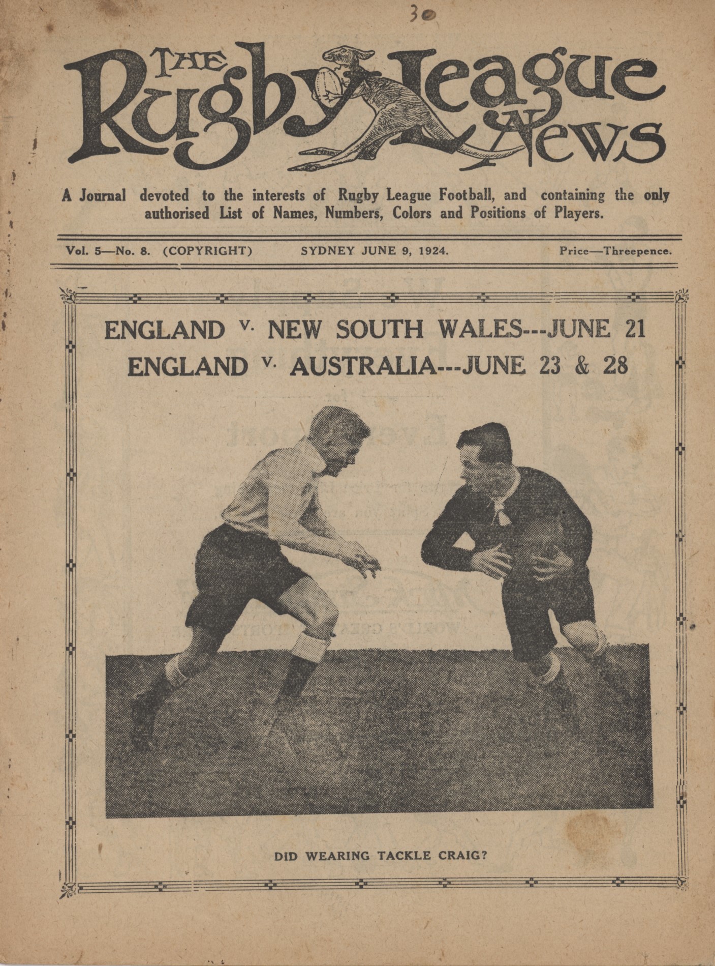 Rugby League » Programmes » International Matches » NEW SOUTH WALES V ENGLAND 1924 RUGBY LEAGUE PROGRAMME