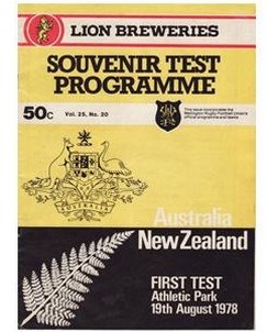 Souvenir Test rugby programme for the First Test between New Zealand and the Wallabies at Athletic Park, Wellington, on August 19 1978.