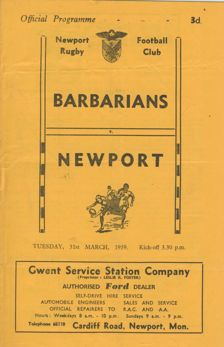NEWPORT V BARBARIANS 1959 RUGBY PROGRAMME