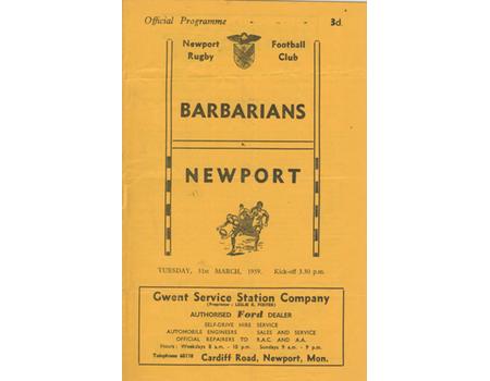 Rugby Union » Rugby Union Programmes » Barbarians » NEWPORT V BARBARIANS 1959 RUGBY PROGRAMME