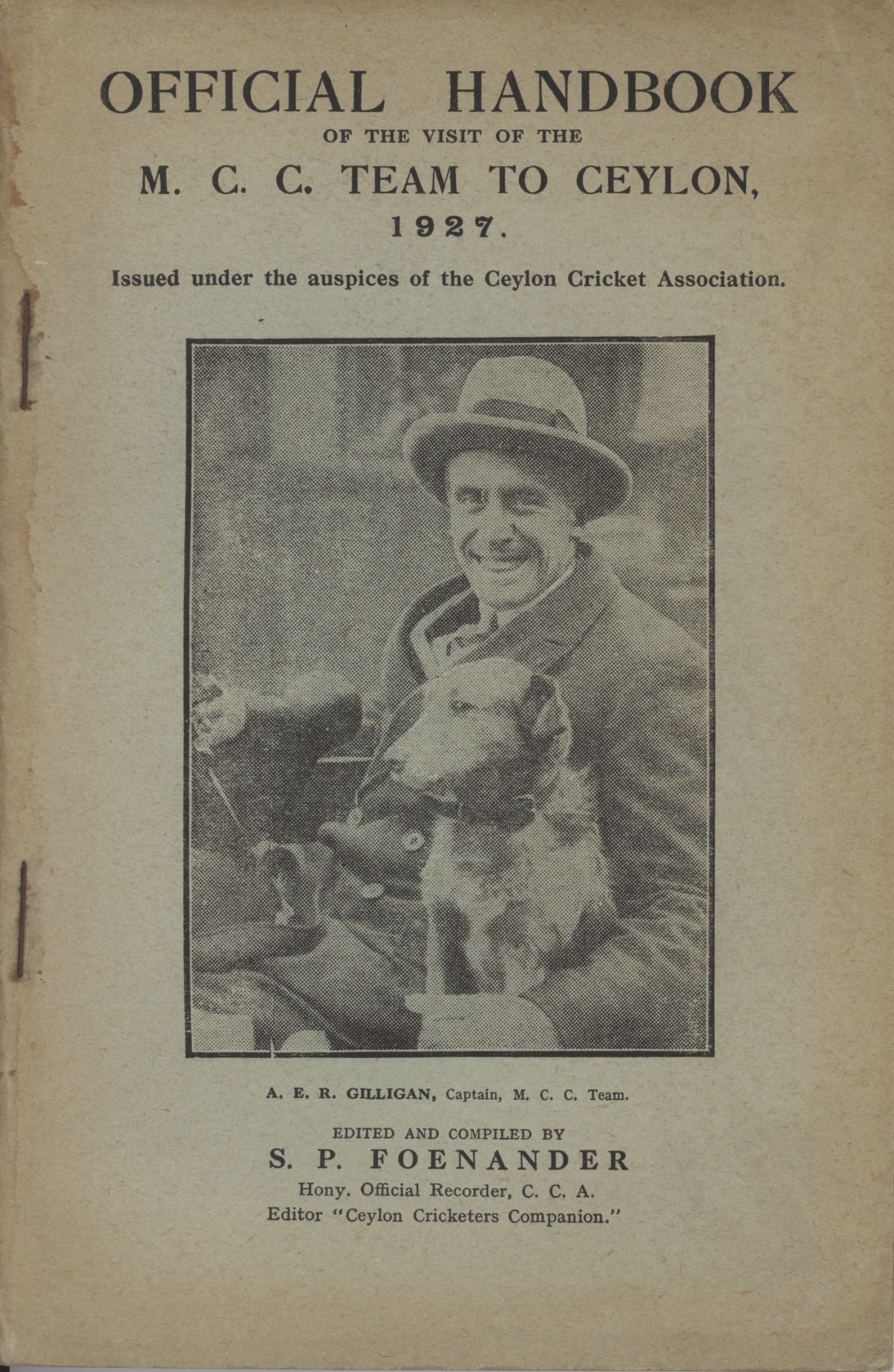 The comprehensive guide to England's cricket tour of Sri Lanka in January/February 1927 under A.E.R. Gilligan, including a history of past matches, a who's who of the MCC team, relevant statistics and the full programme, with photographic illustrations throughout. Portrait of Gilligan to front. The trip to Ceylon was the final leg of a tour that included India and Burma.