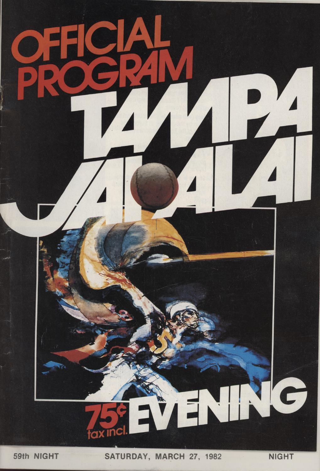 Other Sports » Other Minor Sports » Books » General » OFFICIAL PROGRAM TAMPA JAI-ALAI, 59TH NIGHT (27 MARCH 1982)