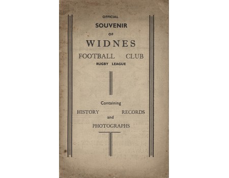 Rugby League » Brochures » General Brochures » OFFICIAL SOUVENIR OF WIDNES FOOTBALL CLUB, RUGBY LEAGUE, CONTAINING HISTORY, RECORDS AND PHOTOGRAPHS