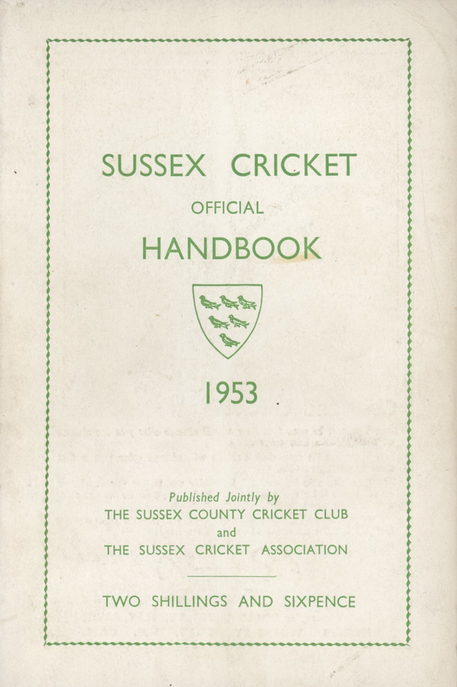 OFFICIAL SUSSEX CRICKET HANDBOOK 1953