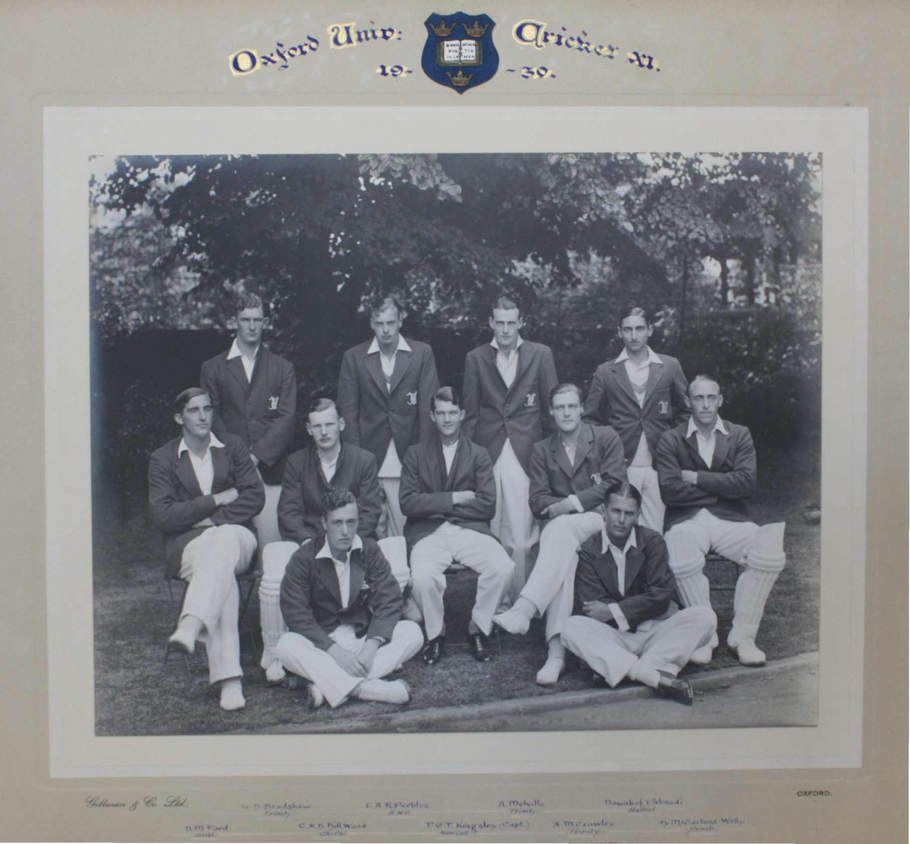 Original black and white cricket photograph by Gillman & Co. of the 1930 Oxford XI that was captained by Patrick Kingsley. The rest of the XI were Walter Bradshaw, Ian Peebles, the Nawab of Pataudi, Neville Ford, Aidan Crawley, Monty Garland-Wells, John Mayhew, Denis Moore, Alan Melville and Charles Hill-Wood.