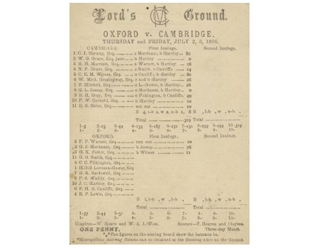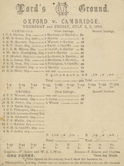 Cricket » Cricket Scorecards » Schools/Universities » OXFORD UNIVERSITY V CAMBRIDGE UNIVERSITY 1896 CRICKET SCORECARD