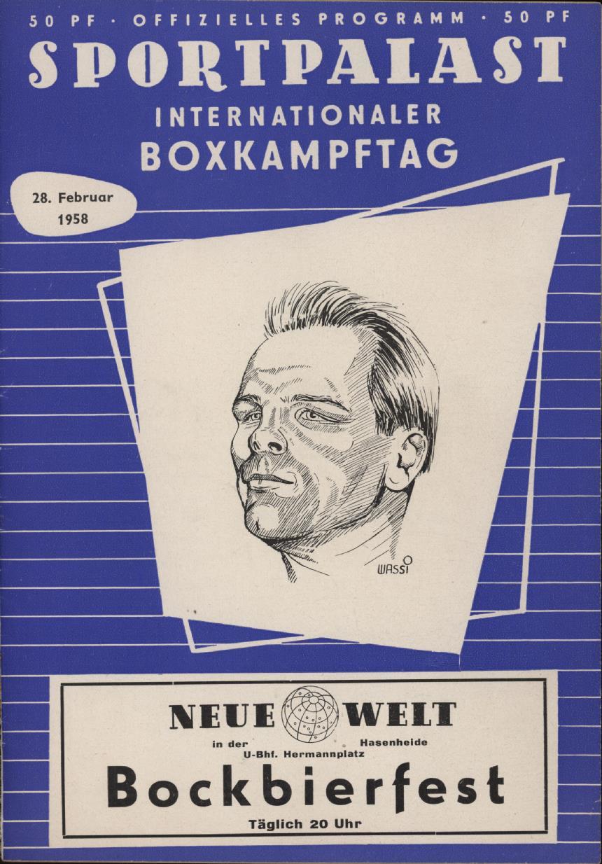 Official boxing programme for the fight held in Berlin on February 28th, 1958.