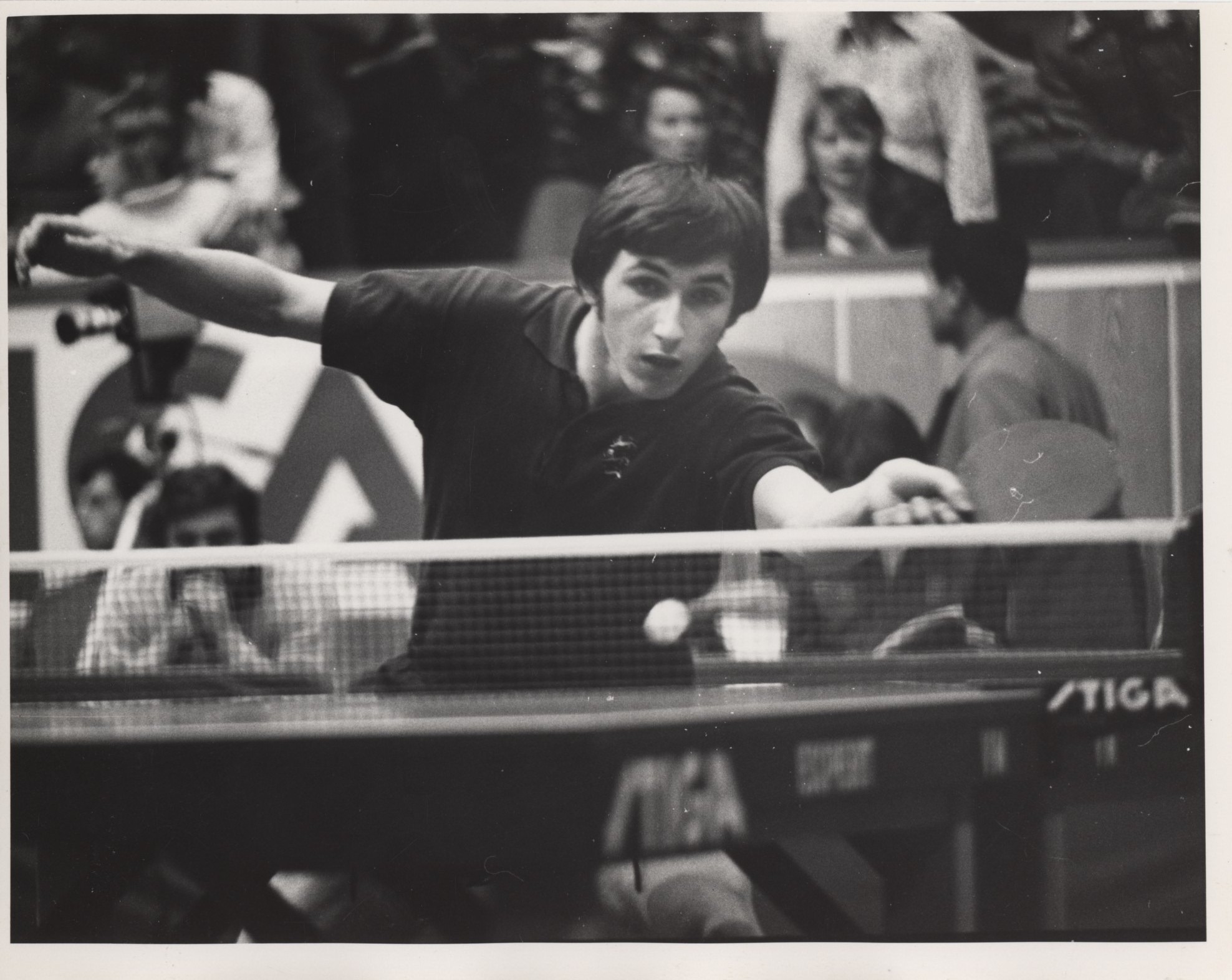 Original Press photograph of Paul Day playing at the World Table Tennis Championships, probably in the late 1970s.