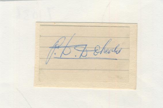 Football autograph. On lined paper and laid down to larger piece.