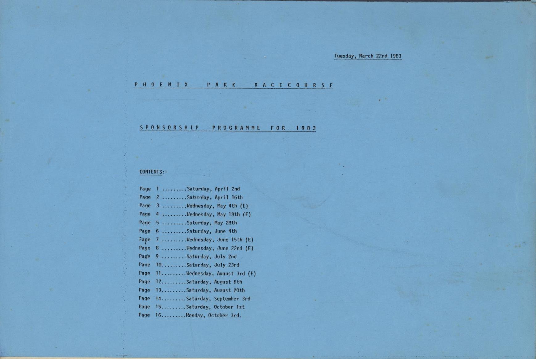 Other Sports » Horse Racing » Books » General Racing » PHOENIX PARK RACECOURSE SPONSORSHIP PROGRAMME FOR 1983