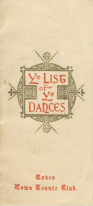 List of Dances for an evening organised by the Raven Lawn Tennis Club at Stanley Hall on March 3rd, 1904. Presumably this is now the Ravens LTC of Finchley.