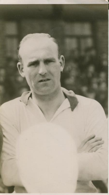 Small photograph of Ray Lambert, by A. Wilkes of West Bromwich. Head of another player whitened out (before printing).