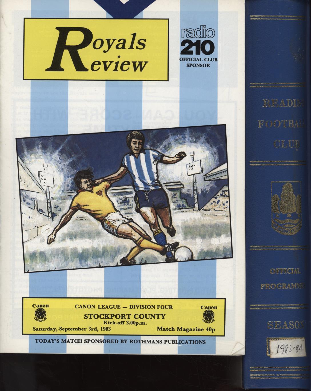 A full season of Reading FC home programmes for 1983-84, including league and cup games. 26 programmes in total.