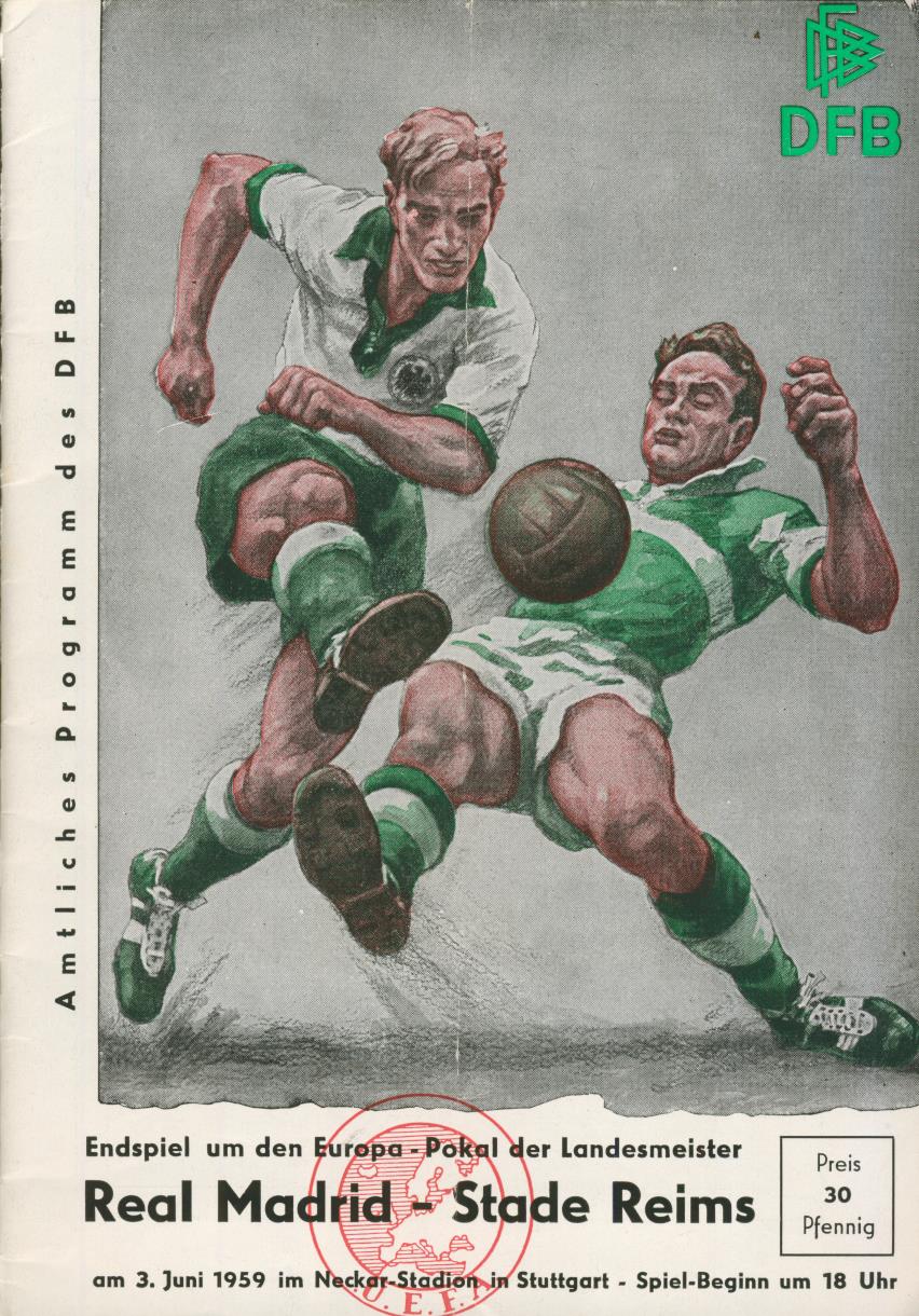 Official programme for the 1959 European Cup Final between Real Madrid and Stade Reims, played at Stuttgart. This was the first final to be played.