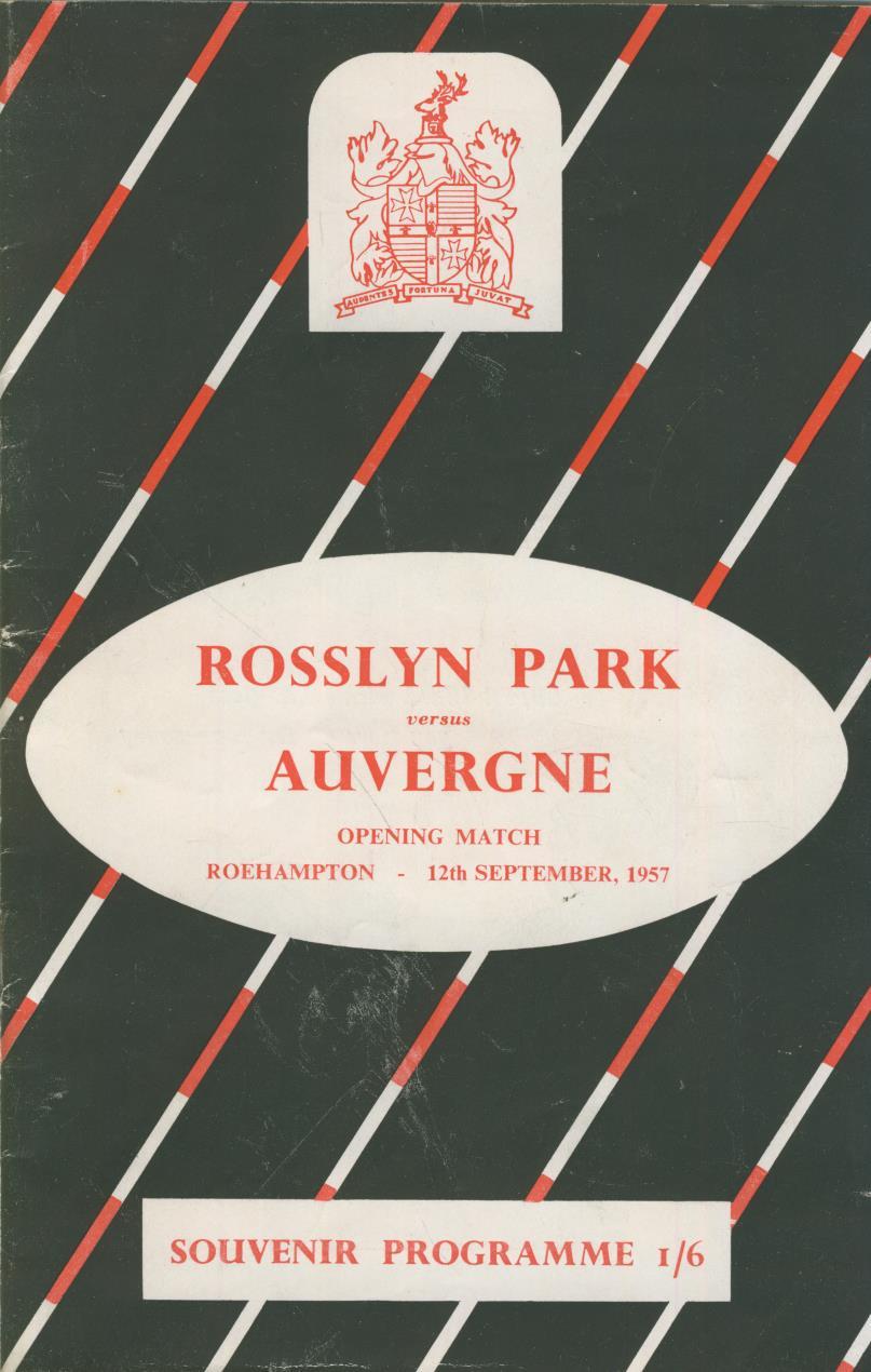 Rugby Union » Rugby Union Programmes » Club and County Programmes » ROSSLYN PARK V AUVERGNE 1957 RUGBY PROGRAMME - OPENING OF THE NEW GROUND IN ROEHAMPTON