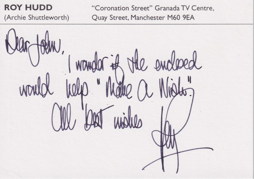 4to. 207 pages. Paperback. Signed in ink by author on fly-leaf (not dedicated). Original Coronation Street unsigned cast card pasted to inside front cover. Coronation Street headed card with personalised dedication and signature slipped in. Fine condition.