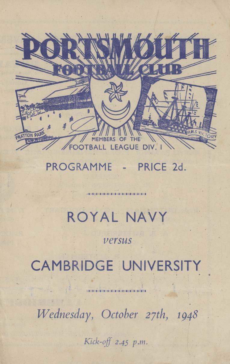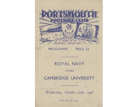 Football » Football Programmes » Representative Teams » ROYAL NAVY V CAMBRIDGE UNIVERSITY (FRATTON PARK) 1948 FOOTBALL PROGRAMME