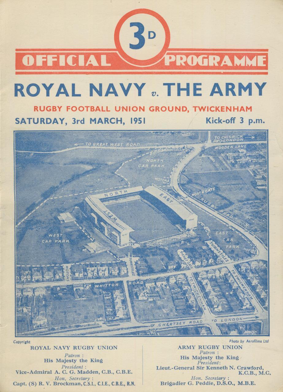 ROYAL NAVY V THE ARMY 1951 RUGBY PROGRAMME