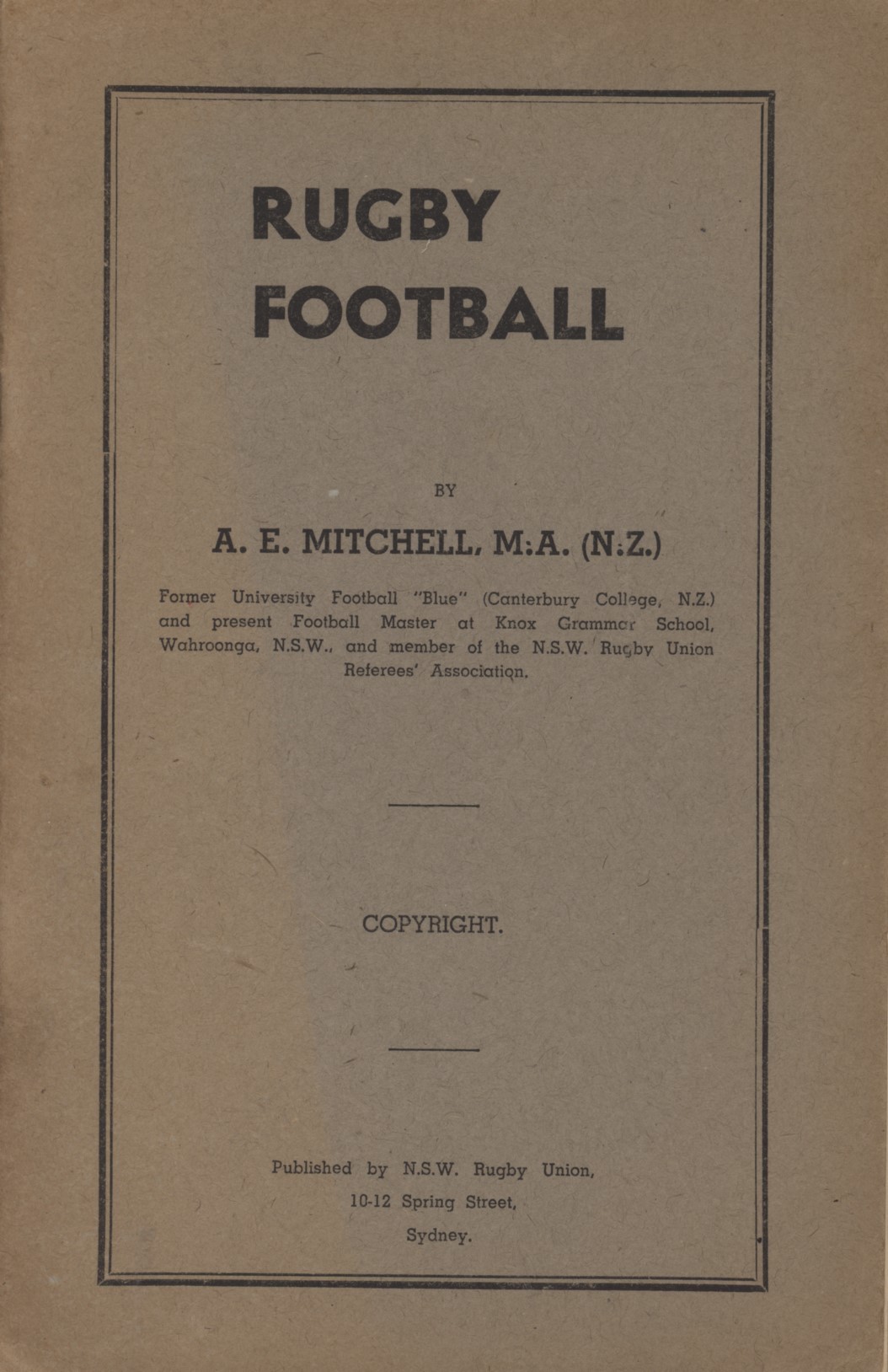 Antipodean rugby union coaching manual from the 1940s, illustrated with line diagrams and photographic plates.