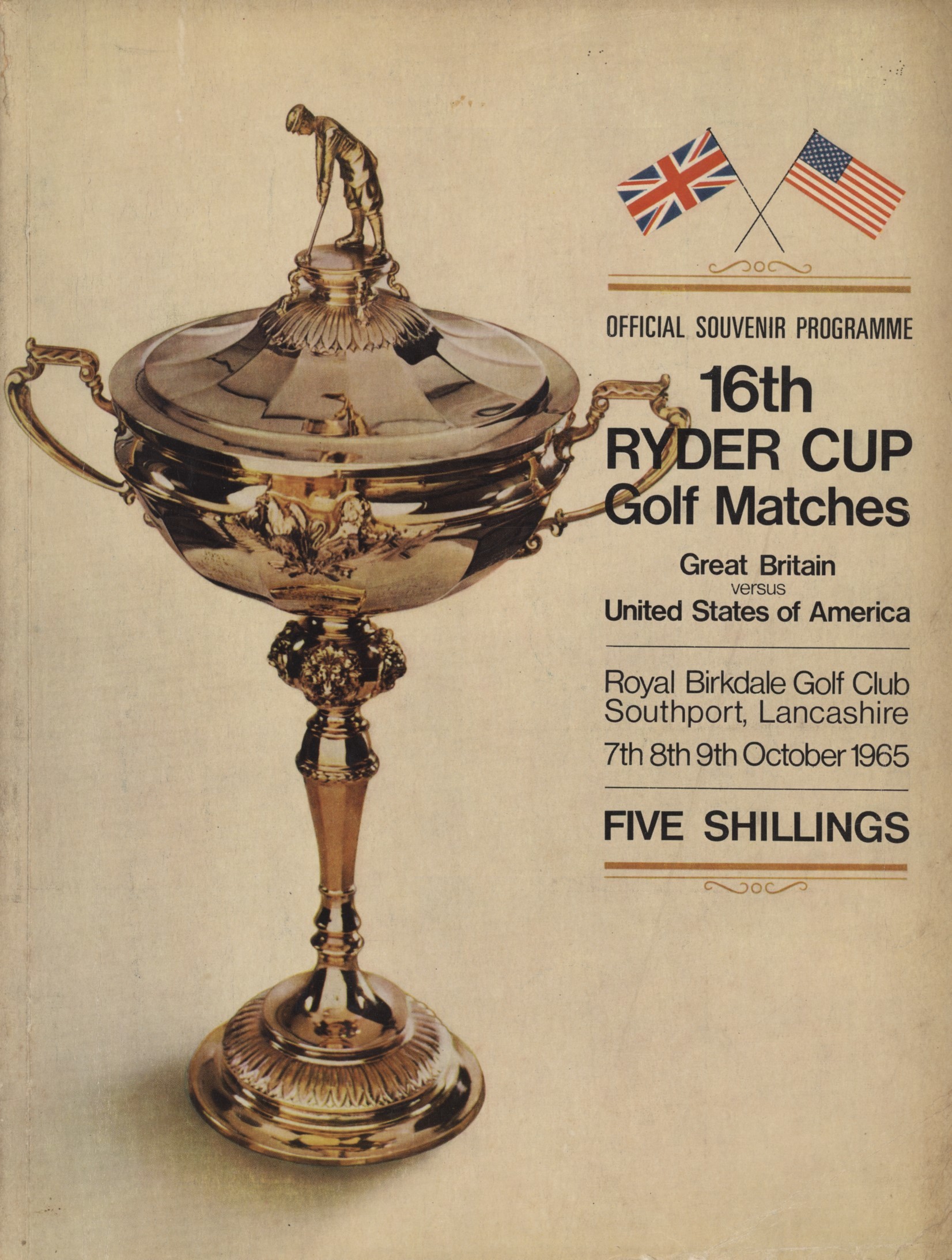 Official Souvenir programme for the 1965 Ryder Cup, played at Royal Birkdale. With course map.