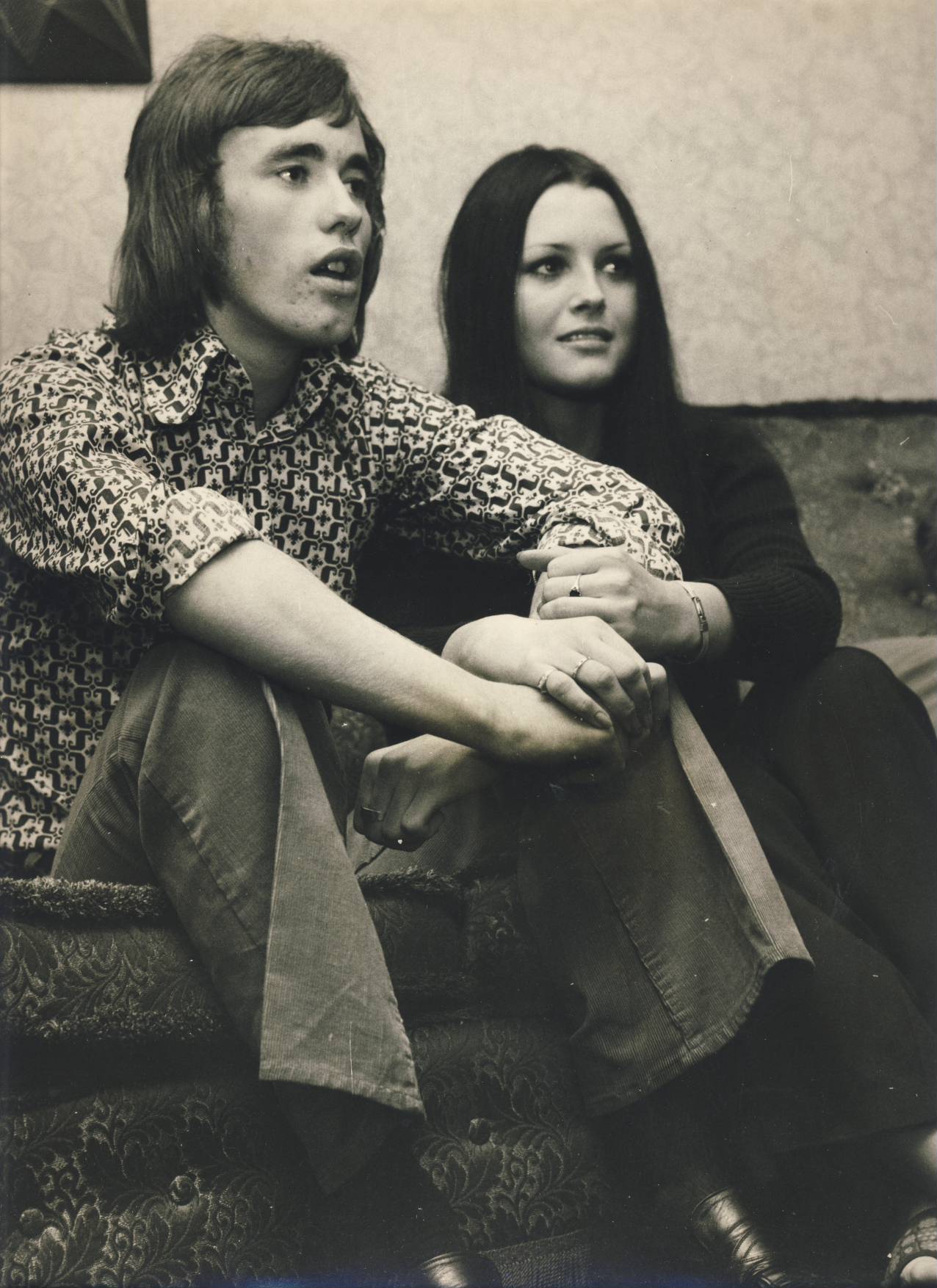Large original photograph of McIlroy, in his early Manchester United days, sitting on a sofa with his wife.