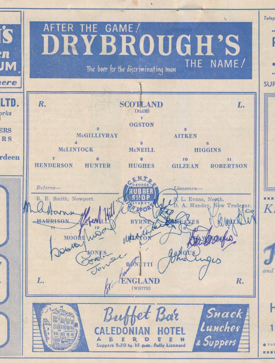 Official programme for the match played at Pittodrie Park on February 28th, 1962. England won 4-2 with two each for Greaves and Harrison.