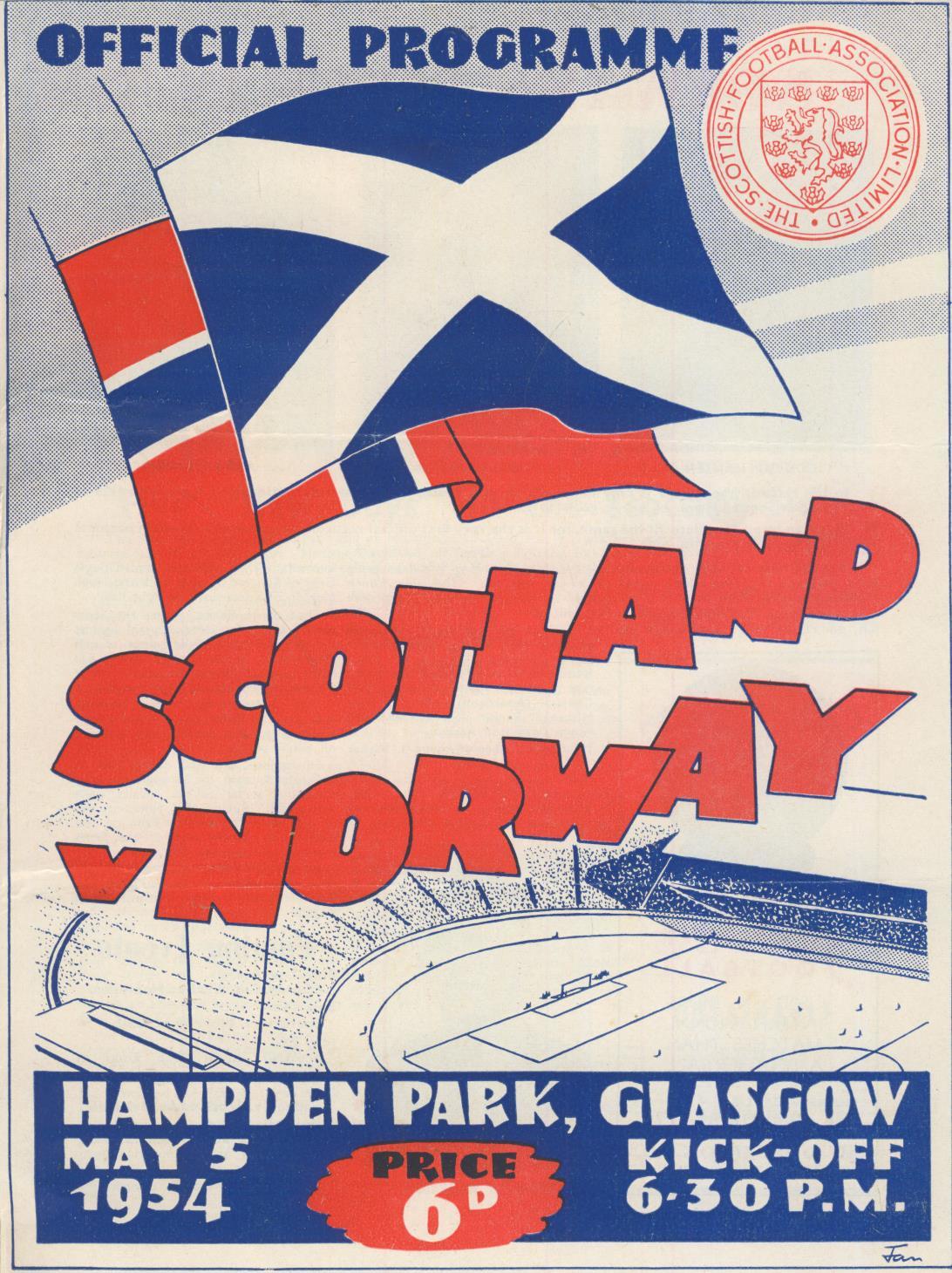 SCOTLAND V NORWAY 1954 FOOTBALL PROGRAMME