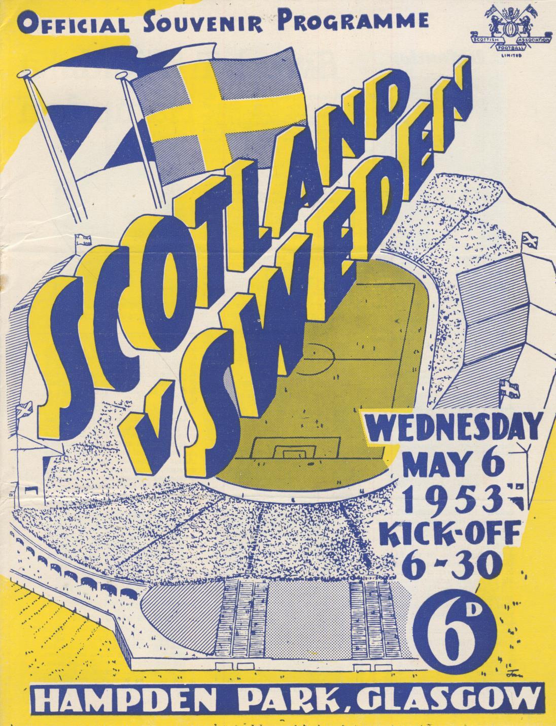 SCOTLAND V SWEDEN 1953 FOOTBALL PROGRAMME