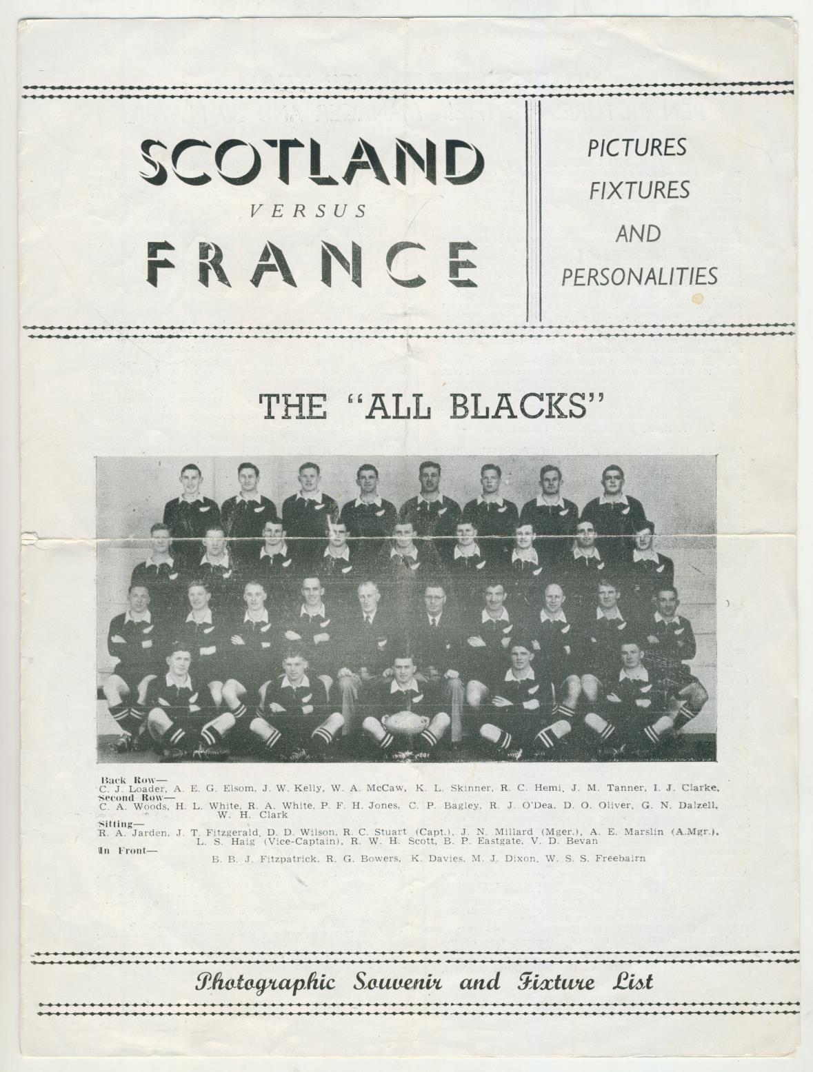 Pirate programme for match played at Murrayfield in 1954. With details and photographs of the New Zealand touring team and pictures of the England and Scotland teams to reverse.