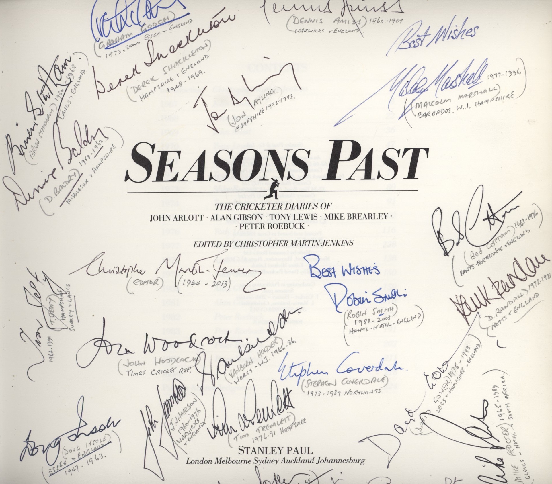 Cricket » Cricket Books » Cricket History » SEASONS PAST - THE CRICKETER DIARIES OF JOHN ARLOTT, ALAN GIBSON, TONY LEWIS, MIKE BREARLEY AND PETER ROEBUCK