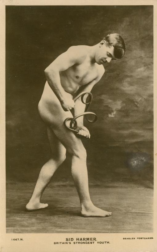 Real photographic postcard of Sid Harmer, Britain's strongest youth.