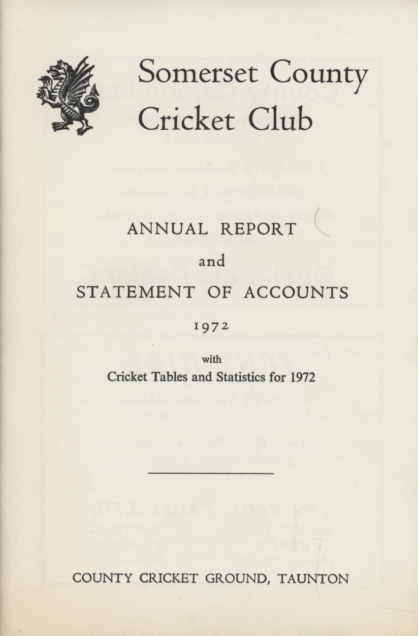Cricket » Cricket County Yearbooks » Somerset Yearbooks » SOMERSET COUNTY CRICKET CLUB ANNUAL REPORT AND STATEMENT OF ACCOUNTS 1972