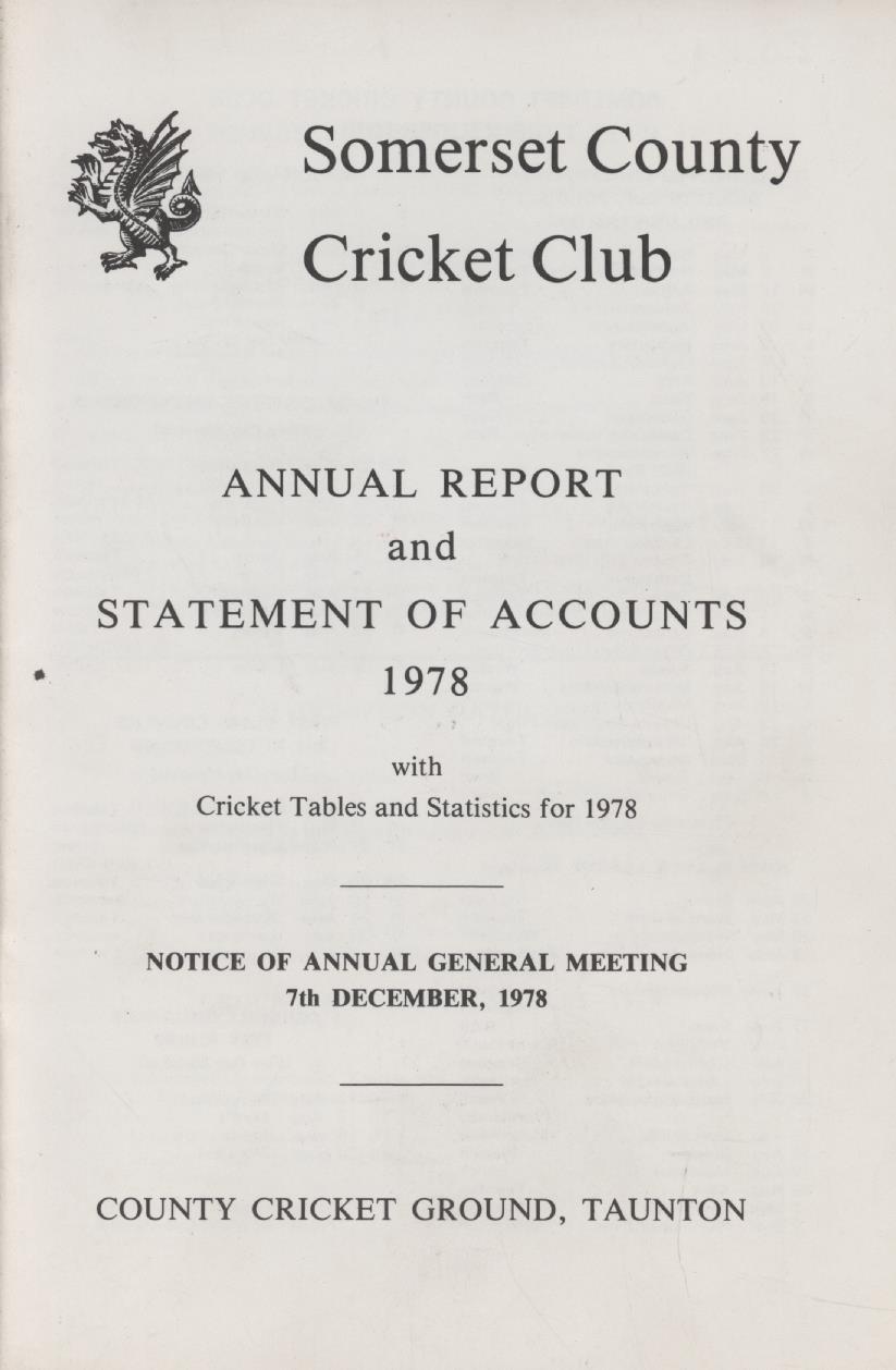 Cricket » Cricket County Yearbooks » Somerset Yearbooks » SOMERSET COUNTY CRICKET CLUB ANNUAL REPORT AND STATEMENT OF ACCOUNTS 1978