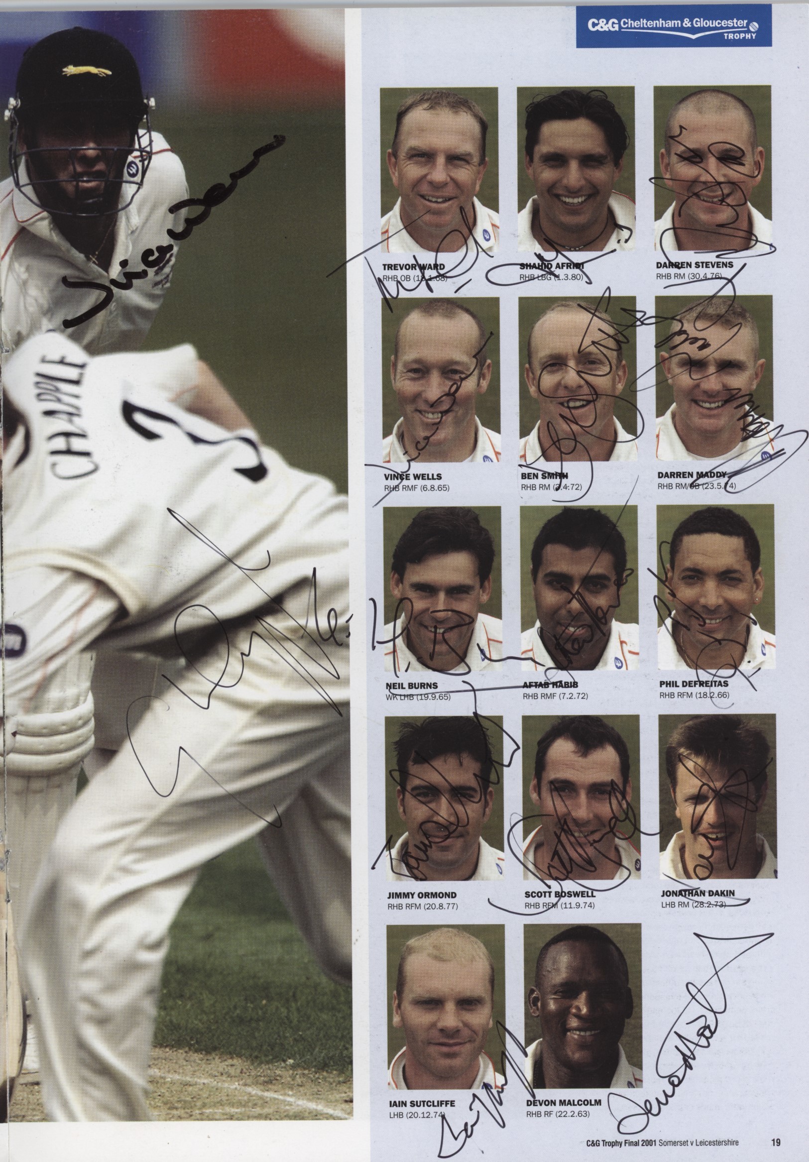 SOMERSET V LEICESTERSHIRE 2001 C&G FINAL CRICKET PROGRAMME (PROFUSELY SIGNED)