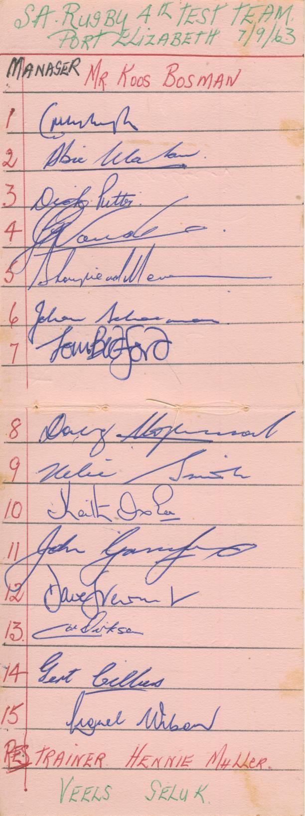 Rugby Union » Rugby Union Autographs » General Rugby Autographs » SOUTH AFRICA 1963 RUGBY AUTOGRAPHS - 4TH TEST V AUSTRALIA