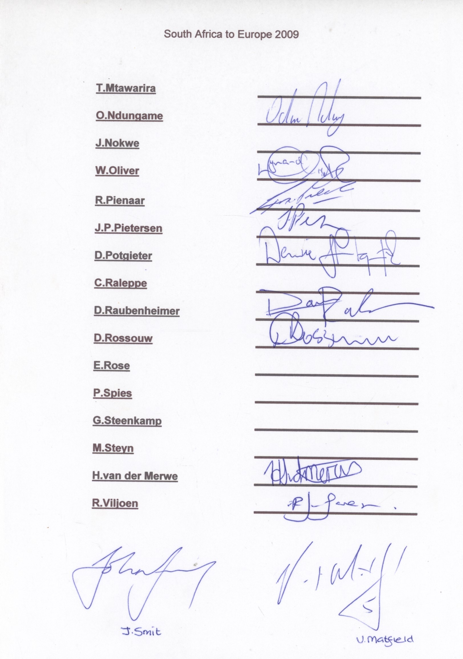 Rugby Union » Rugby Union Autographs » General Rugby Autographs » SOUTH AFRICA 2009 (TOUR TO EUROPE) RUGBY UNION AUTOGRAPHS