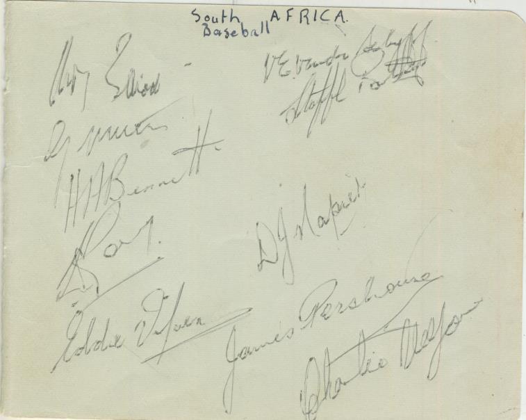 SOUTH AFRICA BASEBALL TEAM 1950S AUTOGRAPHS