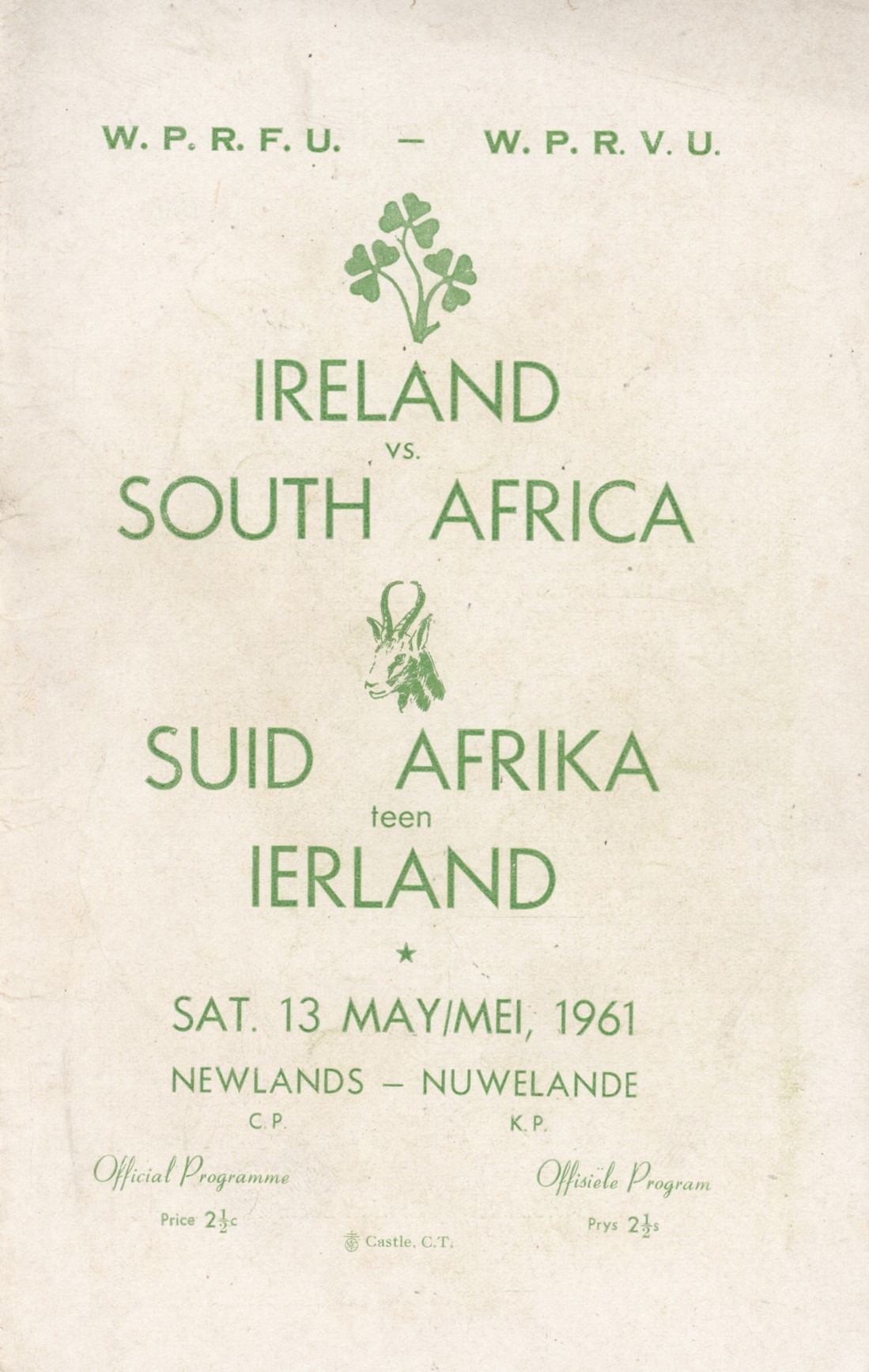 Official rugby uinon programme for the Test played at Newlands on May 13th, 1961. This was Ireland's first rugby tour of South Africa and they lost the match 24-8.