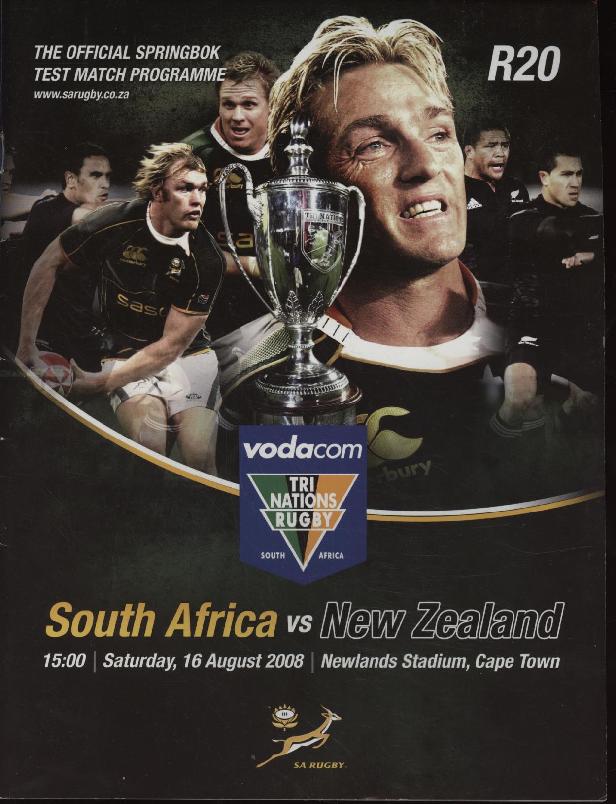 SOUTH AFRICA V NEW ZEALAND 2008 RUGBY UNION PROGRAMME