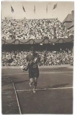 Real photograph of Kenneth McArthur (South Africa) who won the Marathon, circulating the Stockholm Olympic Stadium, 1912. Postally unused. VG.