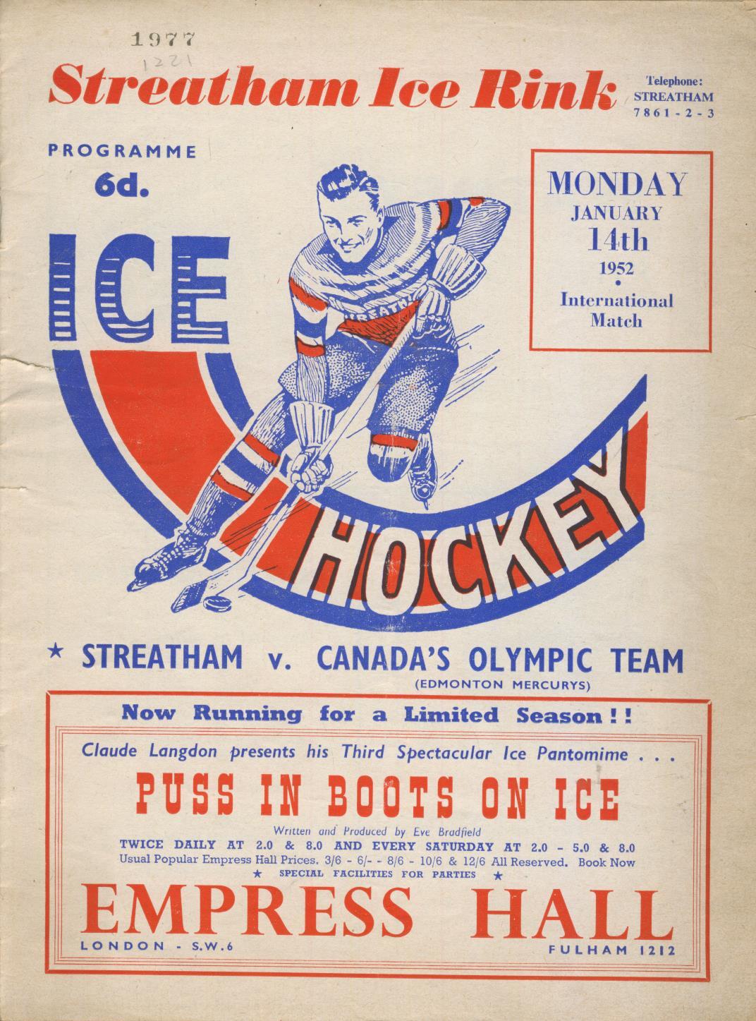 Other Sports » Winter Sports » Ice Hockey » Memorabilia » STREATHAM V CANADA'S OLYMPIC TEAM (EDMONTON MERCURYS) 1952 ICE HOCKEY PROGRAMME