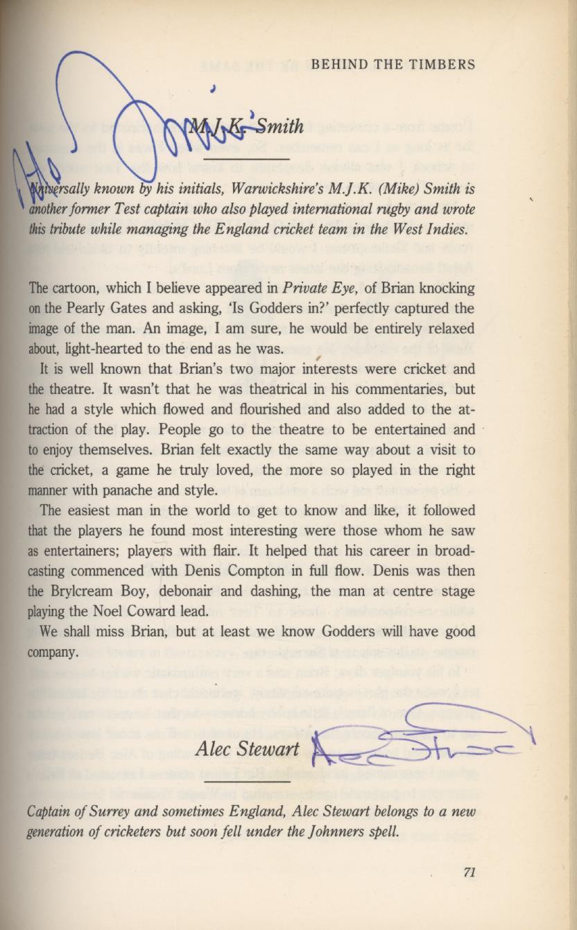 Large 8vo. 177pp. A very good copy in dust wrapper. Signed by Martin-Jenkins and Pat Gibson to title-page. Also signed next to their contributions within the book by a further 30 - Peter West, Jim Swanton, Richie Benaud, Peter Baxter, Jonathan Agnew, Trevor Bailey, Tony Lewis, Don Mosey (twice, once on sticky label), Vic Marks, Tony Cozier, Neville Oliver, Godfrey Evans, Doug Insole, Colin Cowdrey, Mike Smith, Alec Stewart, John Major, George Shearing, Jocelyn Galsworthy, Rachael Heyhoe-Flint, Barry Johnston (sticky label), Sidney Fielden (white card laid down), Richard Stilgoe, Vic Lewis, Nancy Doyle (sticky label), Bill Frindall, John Woodcock, Michael Parkinson (sticky label), Tim Rice and Jack Sokell (sticky label).
