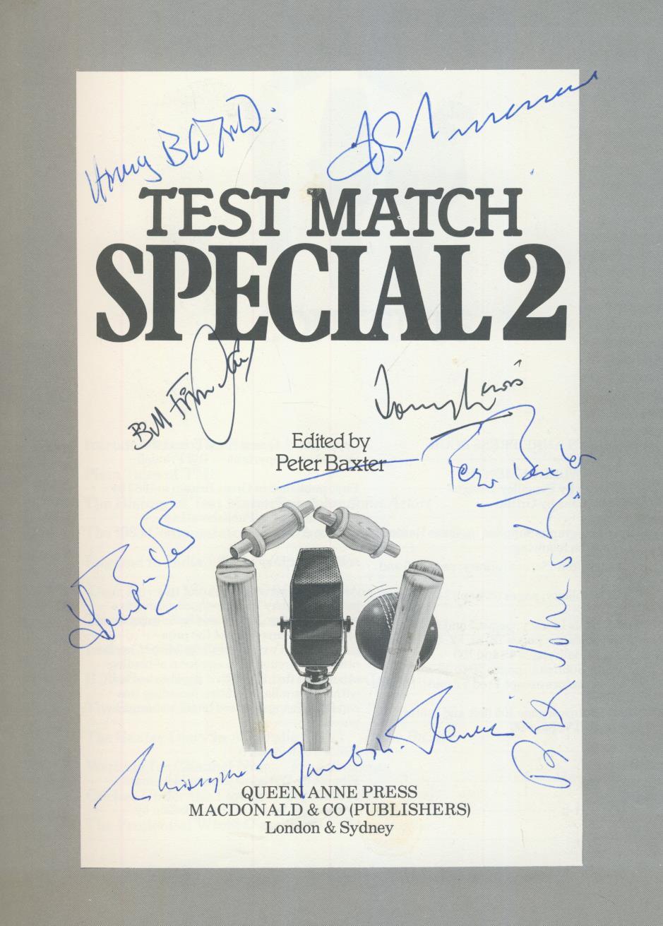 1st edition. Large 8vo. 175pp profusely illustrated. A very good copy in dust wrapper. Signed on the title-page by many stalwarts of the commentary box - Bailey, Trueman, Martin-Jenkins, Blofeld, Baxter, Frindall, Johnson and Tony Lewis.
