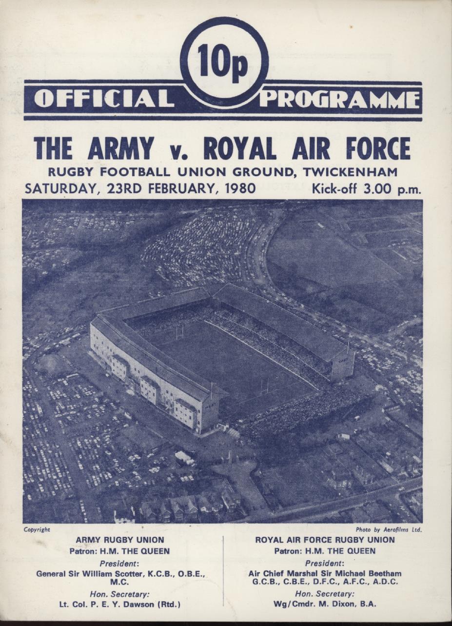 THE ARMY V ROYAL AIR FORCE 1980 RUGBY UNION PROGRAMME