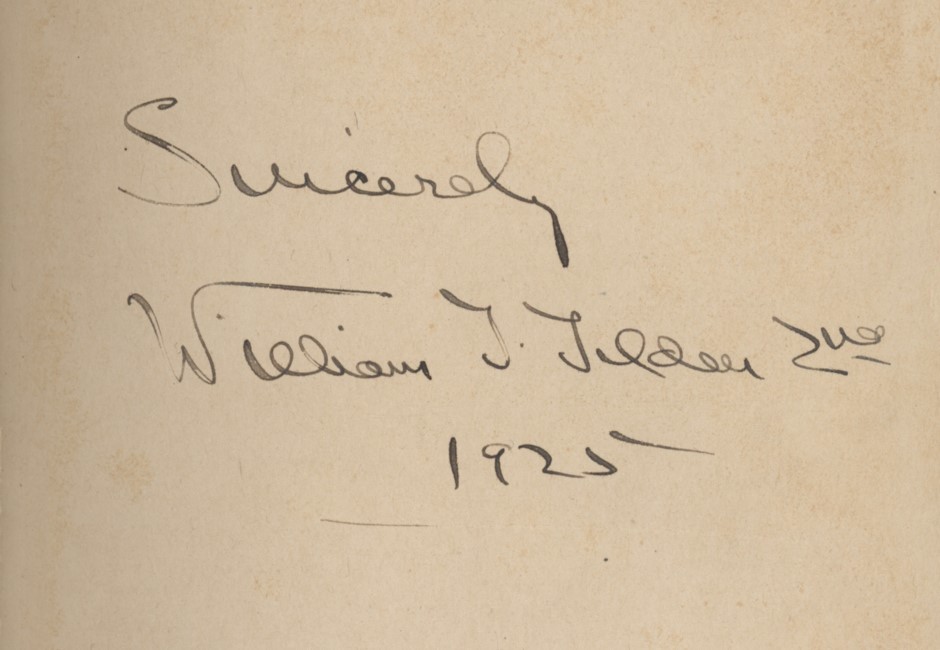 Revised and enlarged edition.  8vo. xix + 229pp. Original green cloth, very good. Owner's name to fly-leaf. Signed very nicely by Tilden to fly-leaf, dated 1925.