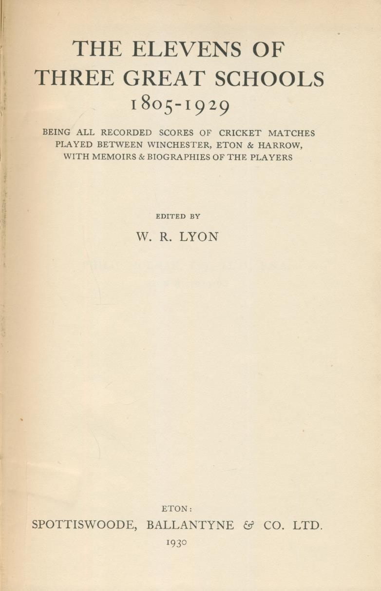 Cricket » Cricket Books » School & University Cricket » THE ELEVENS OF THREE GREAT SCHOOLS, 1805 - 1929