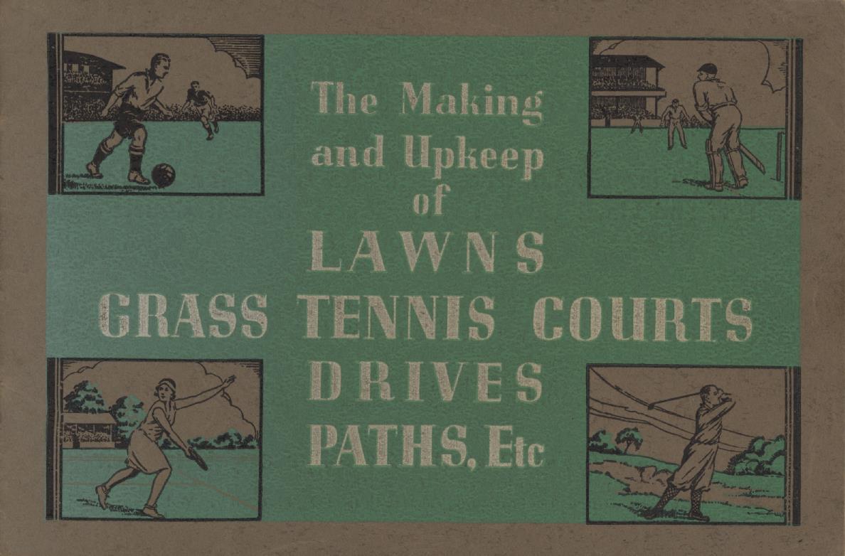 Inter-war guide and product brochure for the maintenance of grass surfaces, including the preparation of sports pictches from the leading British tennis-court contractors of the period.