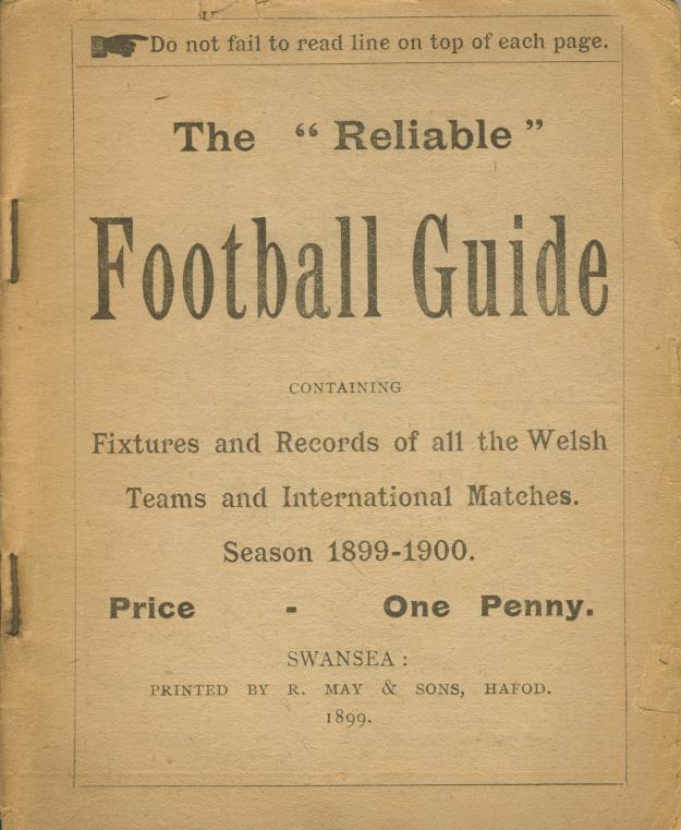 Apparently issued by a Swansea loans company, contains fixtures and records of all the Welsh teams and International Matches. Season 1899-1900.